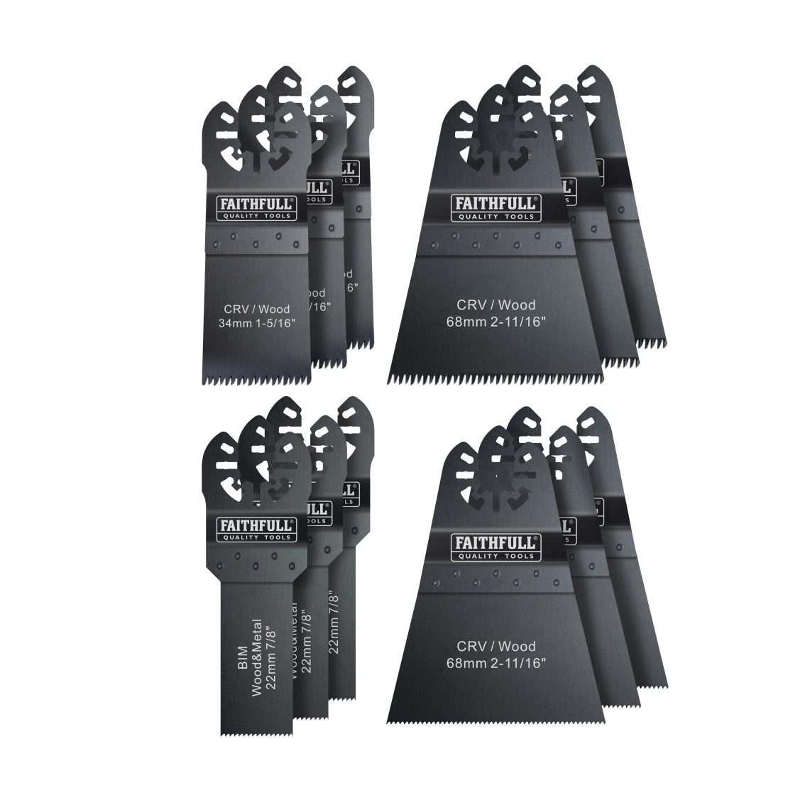 This Faithfull Multi Tool Blade Set includes a selection of the most popular multi-tool blades. The set allows your multi-function tool to carry out a wide range of projects around the home and workshop. Designed for cutting wood and metal, these blades allow access to difficult to reach places.