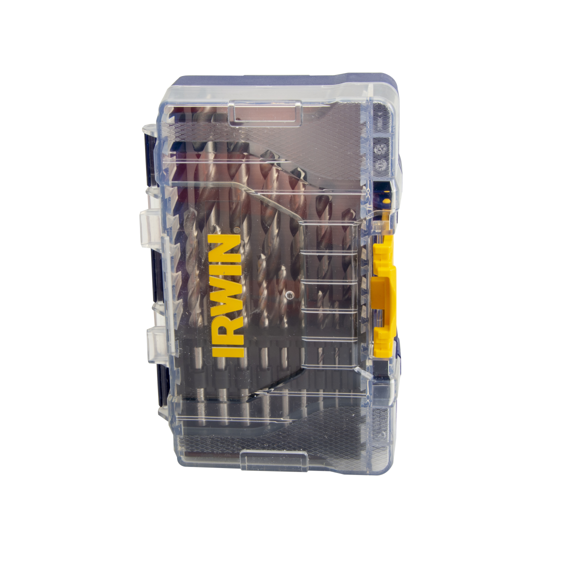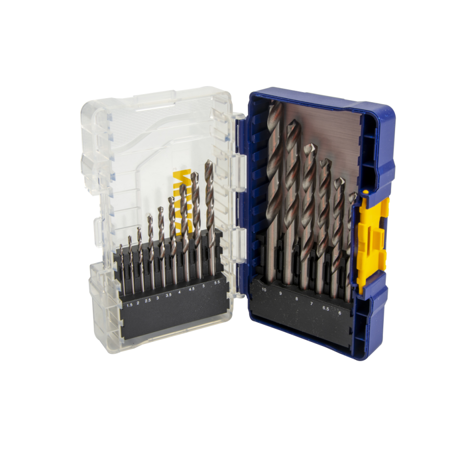 IRWIN® HSS Pro Titanium Drill Bits are designed for drilling metal and harder alloys, as well as being able to produce increased drill speeds of 40%-60% in comparison to the standard bits. With a titanium nitride coating, the drill bits offer higher friction resistance and longer life. Their 135° split point ensures perfect centring and minimises bit walk, whilst also reducing drilling pressure – giving a more accurate and clean finish. Heavy-duty web construction is designed to optimise the strength and durability of the drill bits.