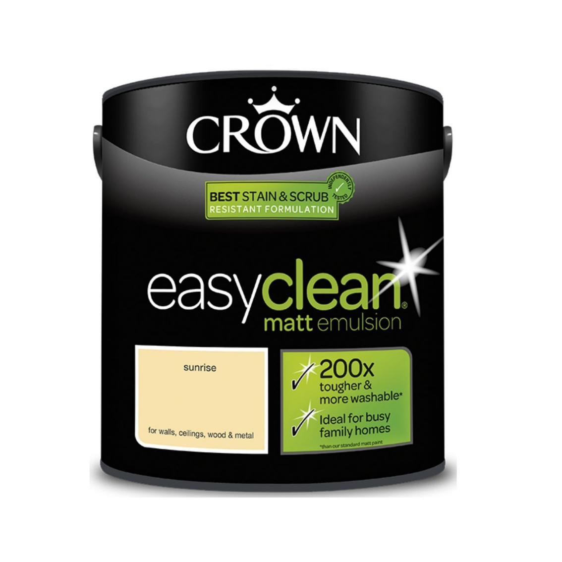 The Crown Easyclean Matt Emulsion is made for busy homes. 200 times tougher than Crown’s standard Matt Paint makes it ideal for repetitive cleaning, bumps and scuffs. Easyclean keeps walls, ceilings, wood and metal looking fresh for longer. Colours co-ordinate with Crown Matt and Silk Emulsion, a great choice for stunning feature walls and details. Crown’s toughest and most washable range has a simple, on trend, no shine matt finish with a rich and creamy colour. Breatheasy formula that is 99% solvent free, so paint jobs are safer. Independently tested* against our main competitor products and is shown to be the best for stain and scrub resistance, toughness and washability. Easyclean keeps walls, ceilings, wood and metal looking cleaner for longer, making it perfect for busy family homes