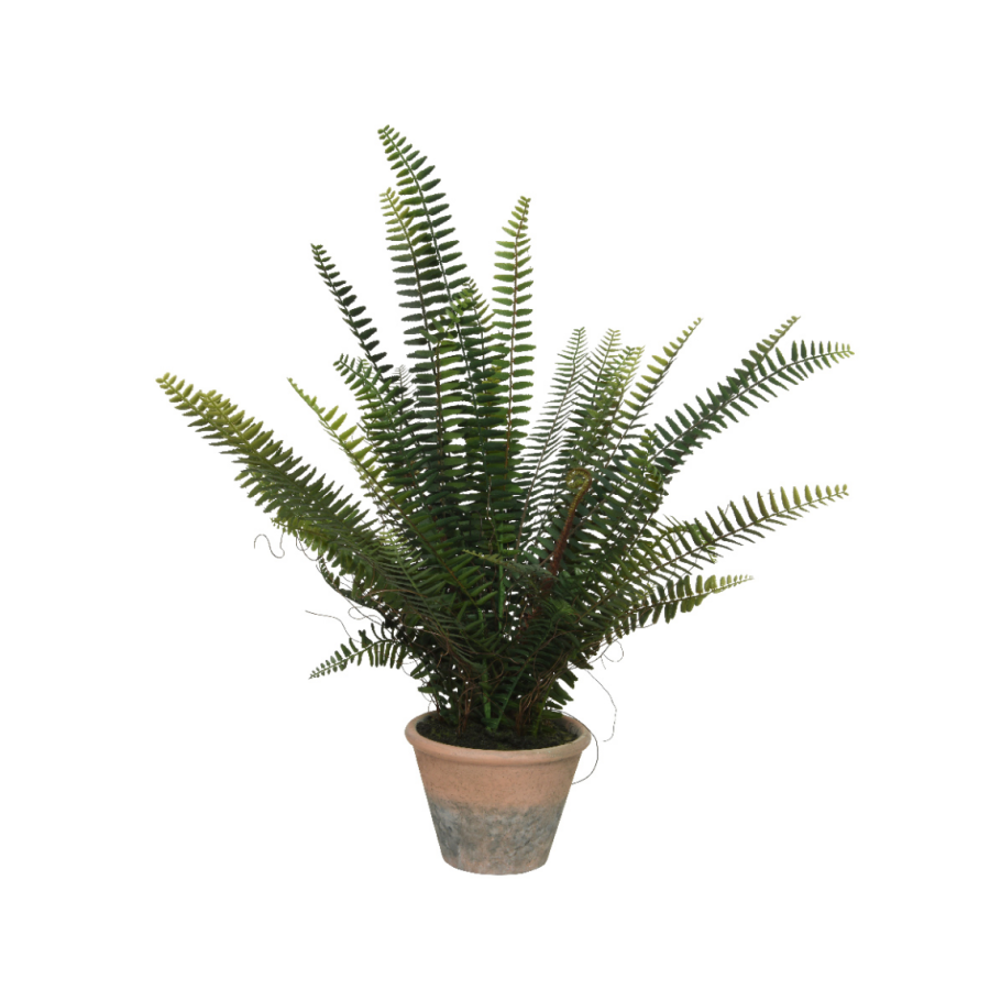Transform your space into a tranquil oasis with this distinctive Fern. Perfect for adding bold and detailed foliage to your space for a homely feel. The plant is plentiful in leaves with realistic details, and varied colour giving it a full, lifelike quality. Use of premium quality materials give this artificial plant a long life with minimal care and zero chance of browning! A great solution for areas of your home that cannot sustain real plant growth. Potted in a terracotta pot it is ready to be placed wherever you choose. This striking Fern is a lush and vintage statement for your interiors.