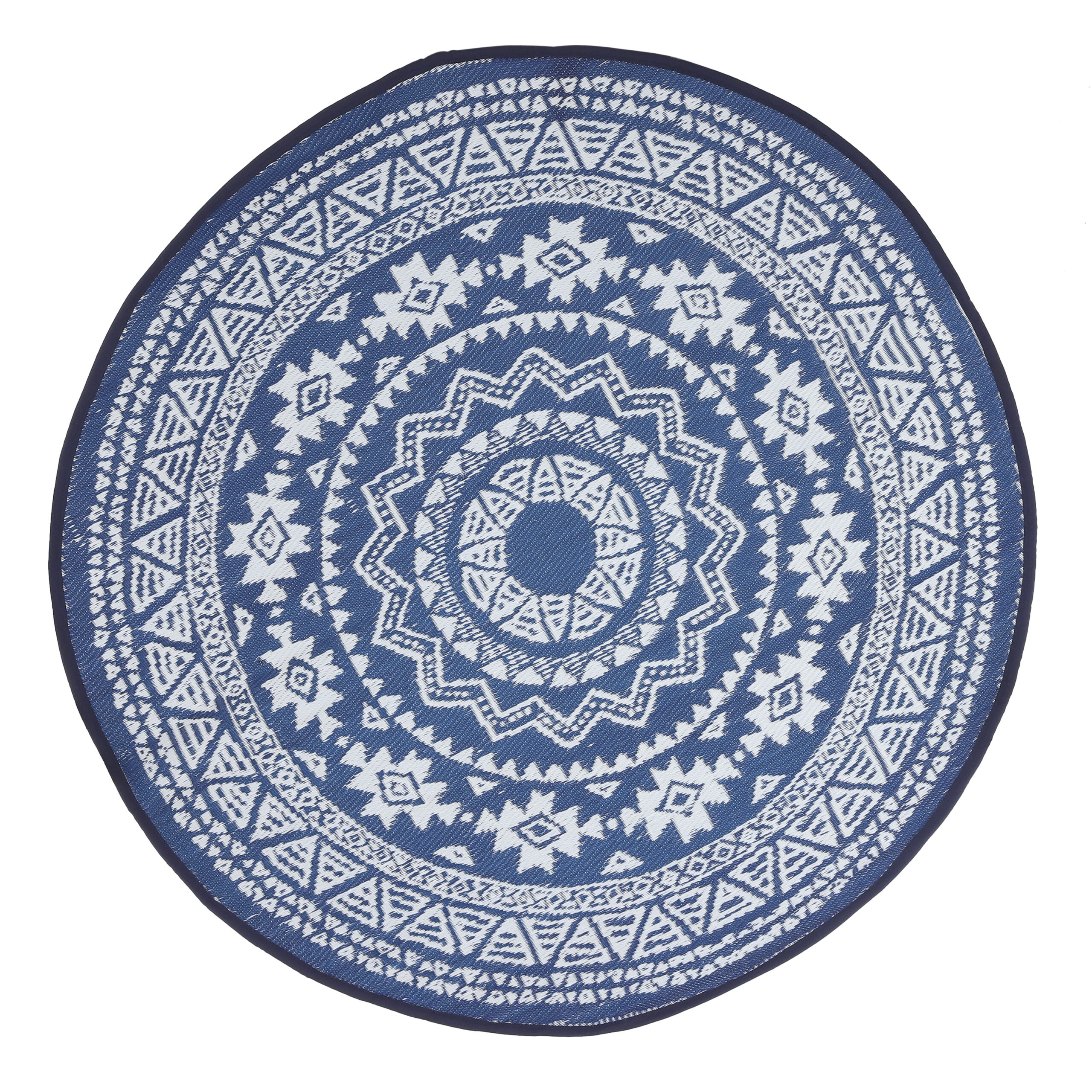 Round blue Debby rug made from recycled plastic.