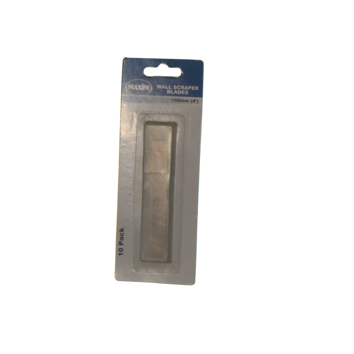 10 x 4 inch Wall Scraper Blades in plastic safety pack. High quality blades made in Sheffield. Made from carbon steel.