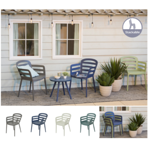 The super comfortable bucket seat design of these New York Dining Chairs will have you changing your chairs or adding to your current set. Light yet durable, they are perfect for use in garden, or when extra guests arrive to your home. Its construction makes it simple to move around with ease, or storing away when not needed. This stylish chair can fit easily with other garden furniture and matches our New York Side Table to create an affordable coffee set. They are made from durable weather resistant resin and are easy to wipe clean. Slatted design allows a breeze to blow through during use, which keeps you cool on warm days. When not in use, you can stack the chairs and keep them until the occasion (or the sun) arises.