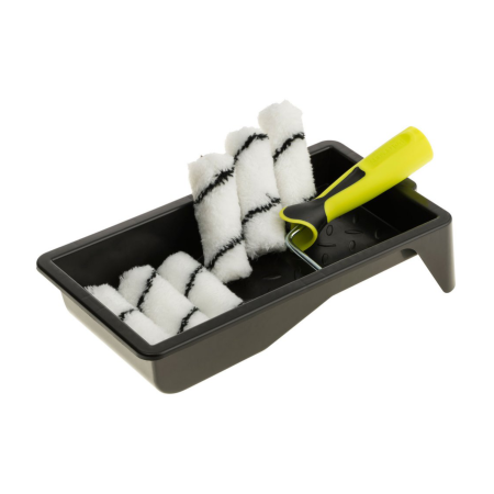 An all in one set to glide through any small areas of your interior paint job. The strong Petersons Tray can be moved around picked up easily without distorting or spilling paint. The ledge in the tray gives good paint loading and the angle ensures that excess paint flows back into the well. Meanwhile, the tread on the tray raises the pile on the paint roller for perfect paint application. When pausing on a job the ledge helps keep the roller out of the paint, so you can cover and store, saving valuable time and labour. Using the Paint Tray keeps your paint in top condition by preventing it from drying out in the tin. Once finished, use the pouring lip to pour excess paint back into the tin.