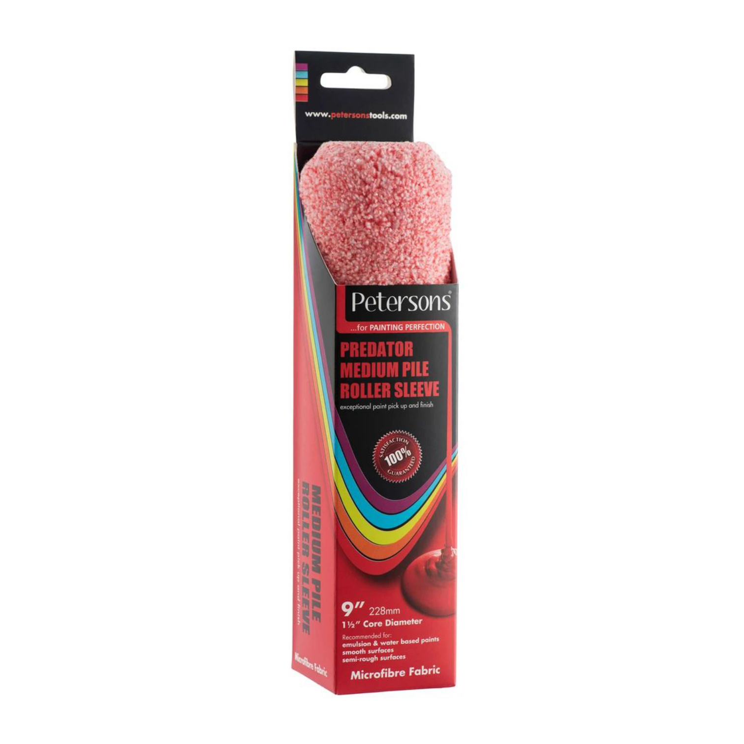 Petersons Predator Microfibre Sleeve is a medium pile that creates a subtle roller mottle across walls and ceilings. For use with emulsion and water based paints on smooth or semi-rough surfaces. Microfibre fabric that offers superior smooth finish. The thermalbonded construction reduces fabric shed so your paintwork is impeccable. Exceptional paint pick up and distribution so you can make progress quickly. Distinctive red and white fabric for easy identification after use.