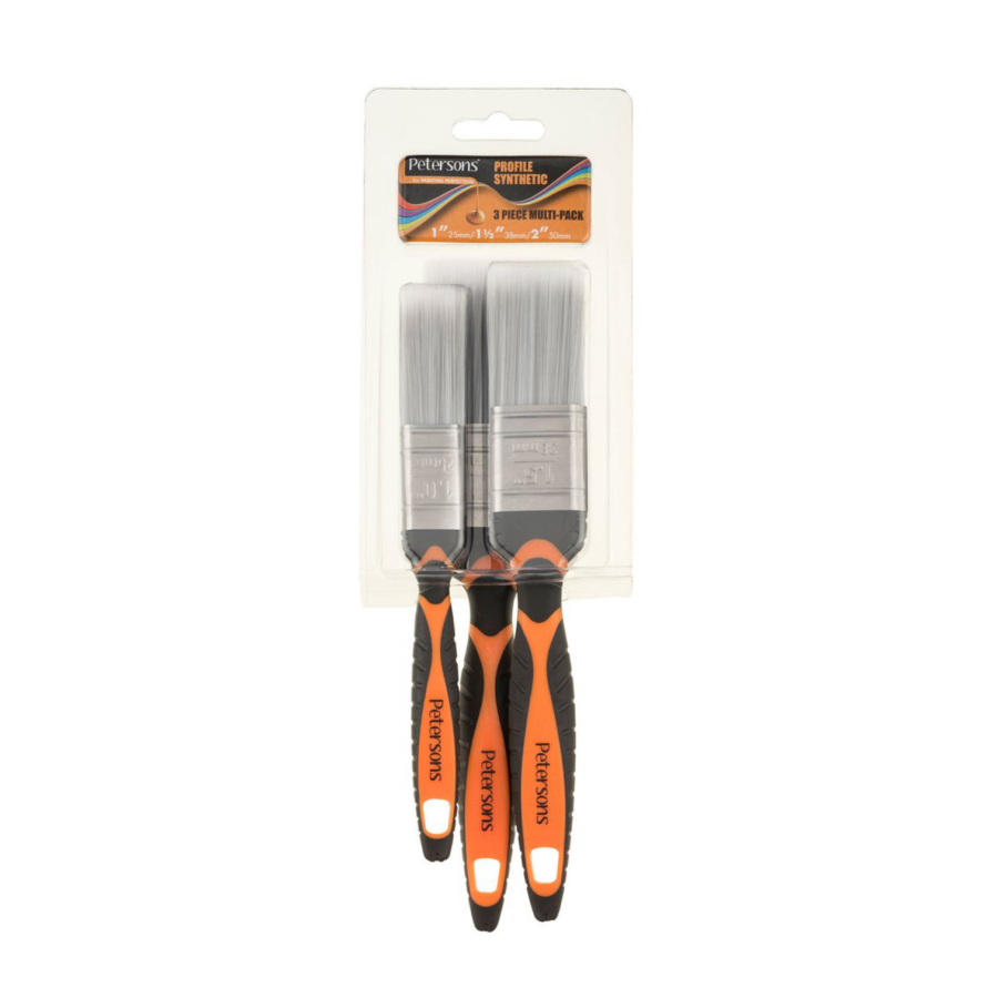 An all round paint brush set suitable for use in all paint applications, water or oil-based. A 100% synthetic brush that uses SRT (Solid Round Tapered) style filaments. This is a solid filament that has a larger diameter at the ferrule end and narrows to a smaller diameter at the opposite end to produce a smooth, flawless finish. The extra thick stock holds a lot of paint so you can glide through jobs. Long length gives extra workability around corners and moulding. Plastic, soft grip handle is comfortable when in use for long periods of time and gives better grip. A stainless steel ferrule resists rusting for prolonged use. Packaged in re-usable cardboard packaging to help keep its shape so your paintwork is always top notch.