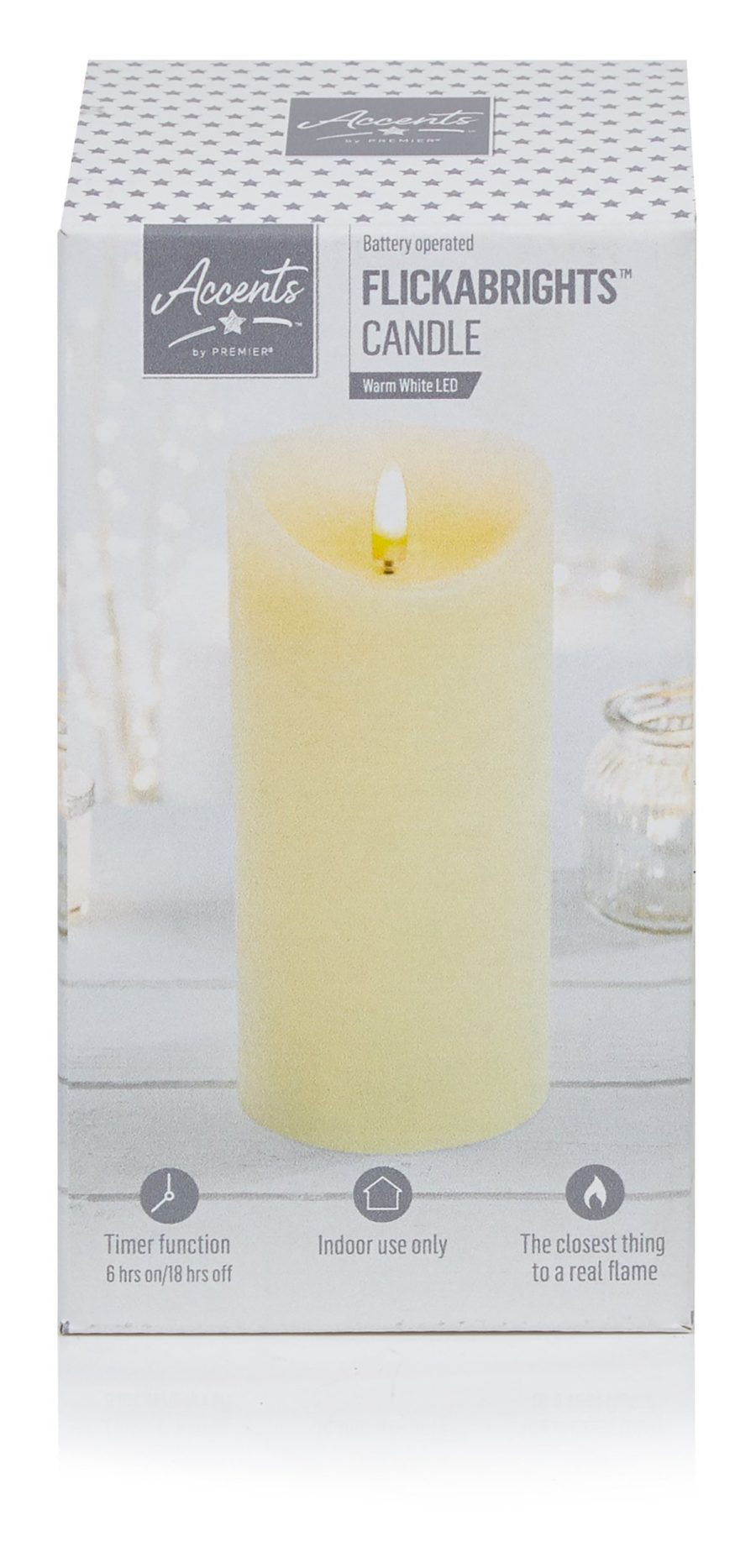 Create a romantic vibe this Christmas with the Premier Melted Effect Flickabright Battery-Operated Wax Pillar Candle. Featuring an artificial dripping wax design, the realistic candle is finished with an artificial flame for complete safety when lit. Perfect for use in traditional interiors or modern minimalist homes with a rustic edge, the elegant flickering candle can be used in a variety of displays. Perfect for use in kids’ bedrooms without the risk of real flames, the battery-operated candle makes a pretty alternative nightlight for the festive season. Place the on the mantlepiece, in windows, or switch out table lamps over Christmas for a magical touch. The candle also looks lovely when arranged with garlands and baubles as part of a table centrepiece at dinner parties. The pretty candle also comes with a handy timer of 8 hours on and 16 hours off to save energy, so you don’t have to worry about remembering to turn it off at the end of the day. Requires 2 x AA batteries (not included).