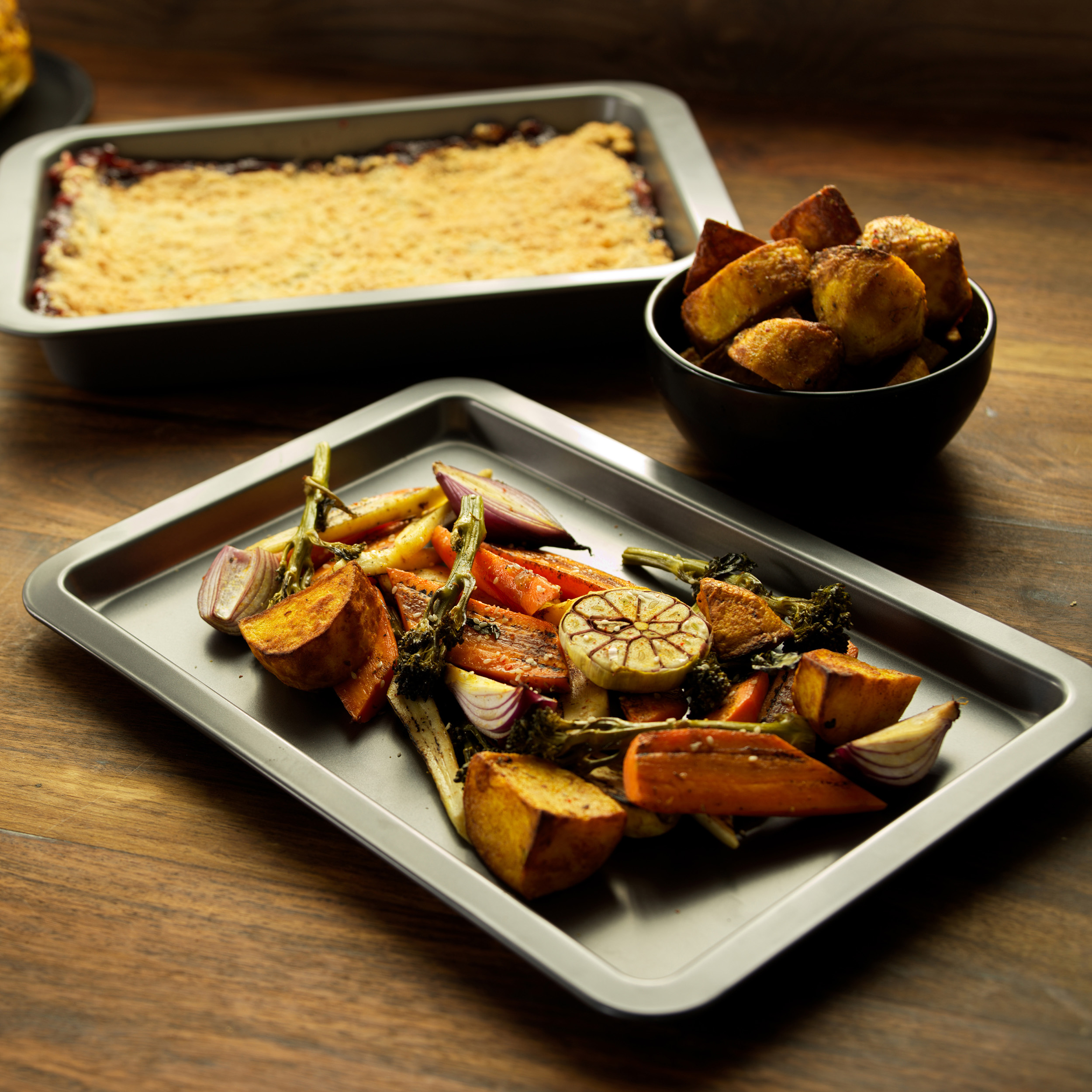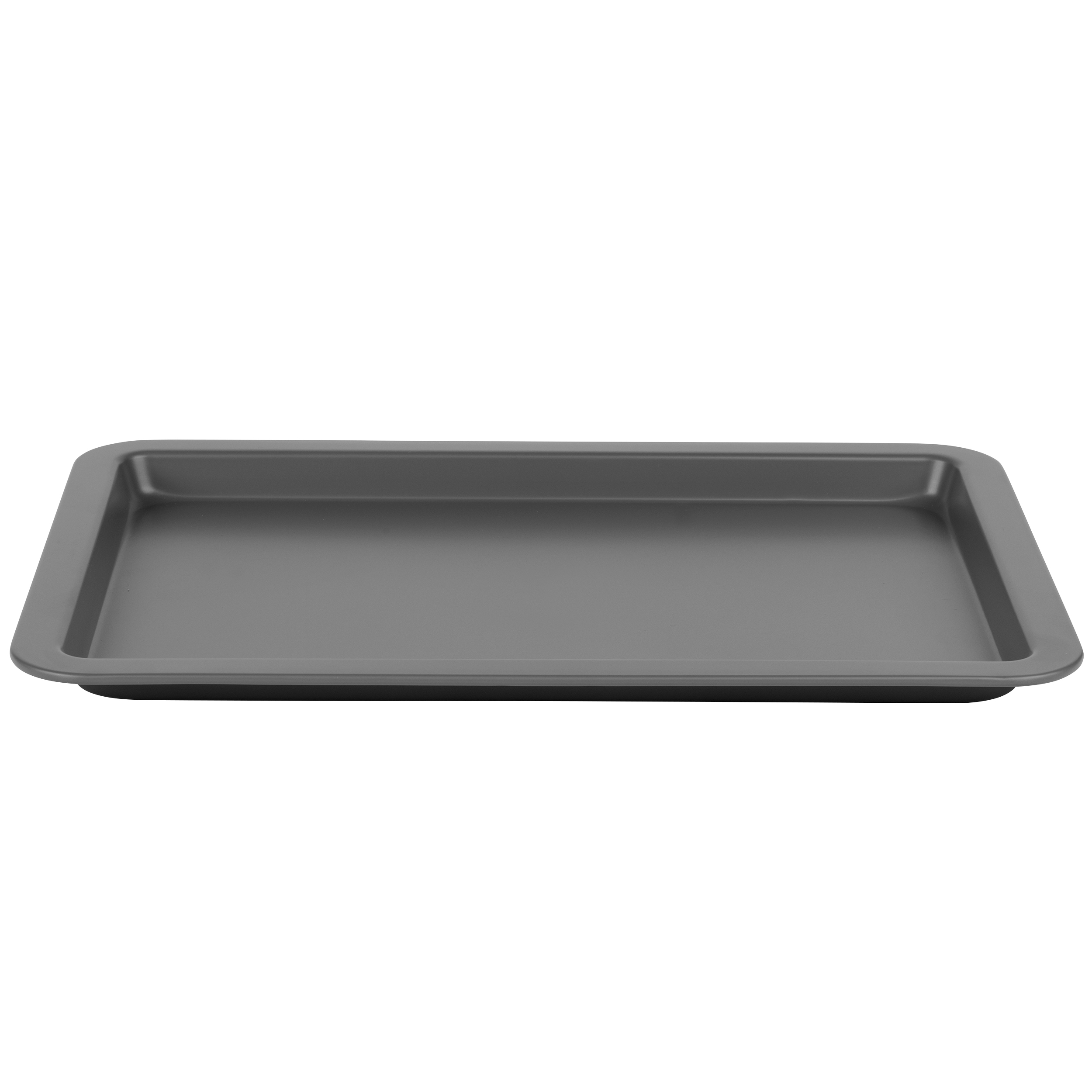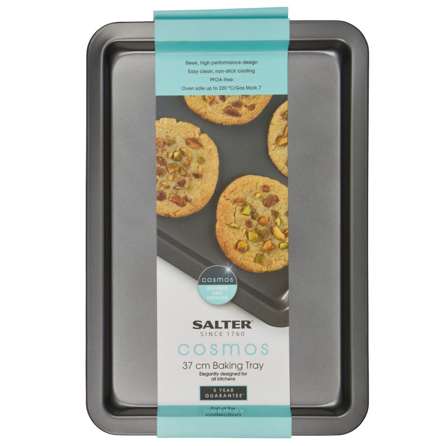 From sweet treats to roast veg, the Salter Cosmos Non-Stick Baking Tray is a kitchen essential. Finished in a smooth dark grey, the sleek tray is the perfect addition to any style of kitchen, whether traditional or modern minimalist. The shallow design features an easy grip rim for convenient moving and can be stacked away for neat storage. Oven safe up to 220 degrees or gas mark 7, the slimline pan comfortably fits most domestic ovens. Perfect for the baking enthusiast or busy family making a quick and convenient tray bake dinner. This baking tray is also ideal for single or two-person households looking to meal prep for the busy week ahead. The lightweight aluminium is perfect for those with limited dexterity, and the non-stick coating makes cleaning easy, just wipe with a soft cloth and warm soapy water. Not suitable for dishwashers.