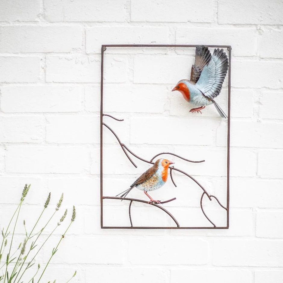 Bring a riot of colour and character to your home or garden with this 3D robin wall art. Featuring a pair of birds, one in flight, it adds eye-catching depth and dimension to any vertical surface.